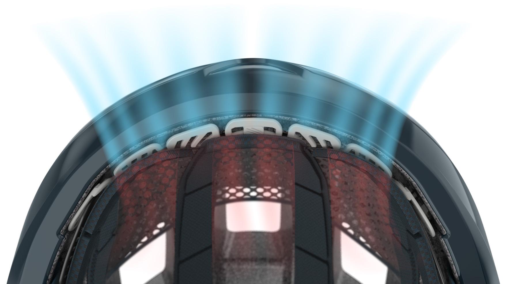 A legújabb generációjú Airframe Band még több szellőzést kínál, mint elődjei. A 3D kialakítása révén a sisak elülső szellőzőnyílásain keresztül közvetlen a homlokunkra felfekvő szivacsozáshoz tereli a levegt, mely ezáltal folyamatosan, menetközben is hatékonyan tud száradni. Ezáltal nem csak komfortosabb viseletet nyújt, de a szivacsozás kevésbé tud kellemetlen szagúvá vállni.