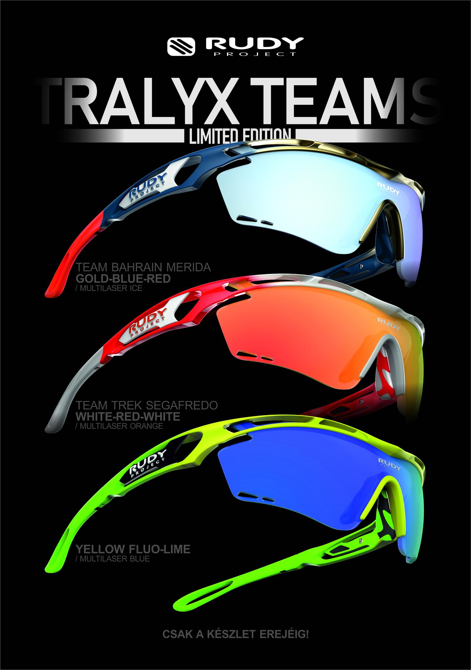 A jelenlegi csúcsmodellben, a TRALYX-ben több mint 30 éves, a sportszemüvegek tervezésében és gyártásában megszerzett tapasztalatok esszenciája összpontosul, melyből most érkezik a TEAMS-széria.